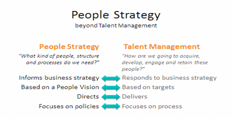 A defined people strategy is the logical extension of the business strategy. It lays out how the organisation intends to utilize its most important asset to deliver on its objectives. It is not subservient to the business strategy. When used properly, the people strategy informs the business strategy, helping executives to decide what the best approach will be for the organisation. Both flow from the corporate objectives and work together to enable the organisation to deliver.